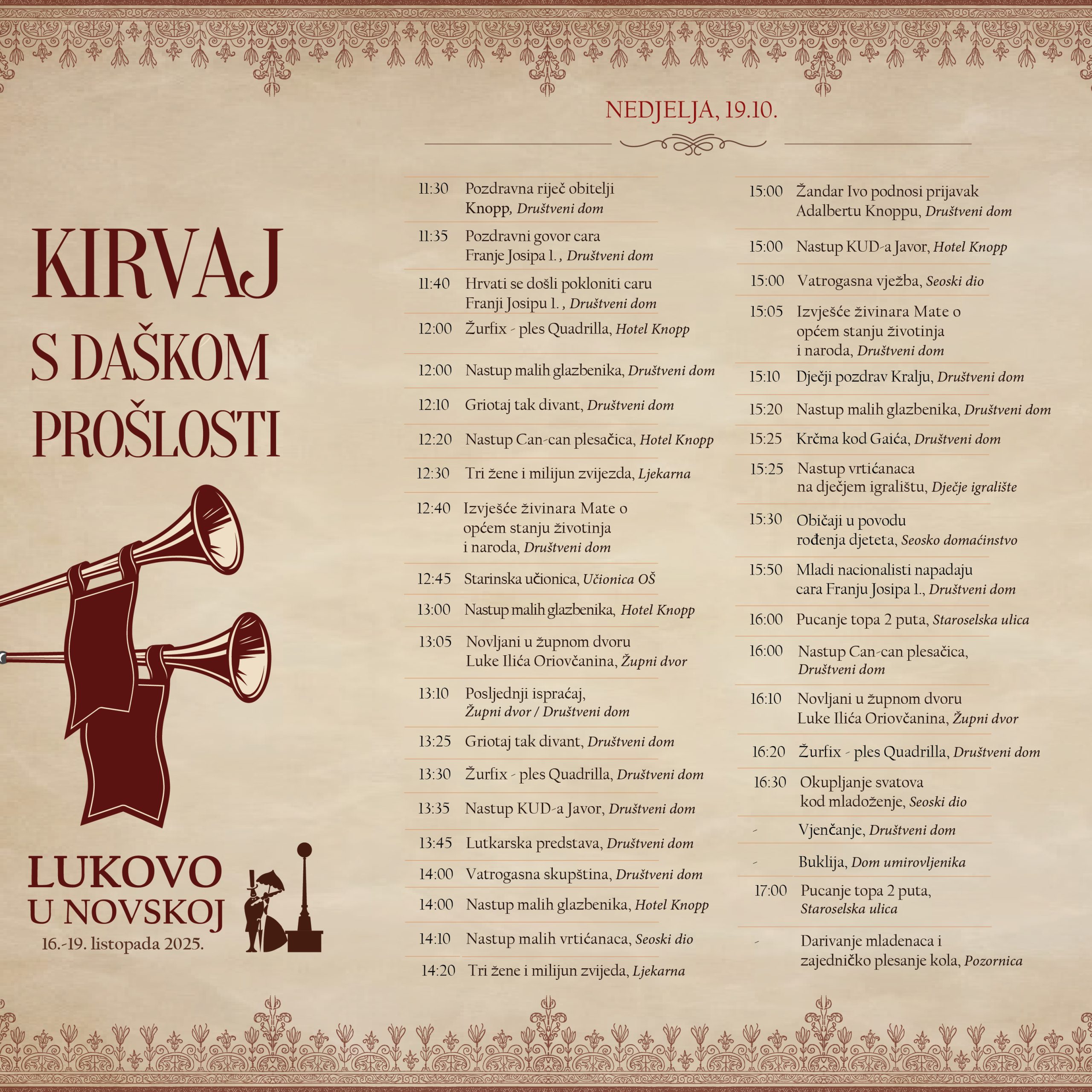 Grad Novska i ove godine s ponosom organizira manifestaciju Lukovo u Novskoj i Kirvaj s daškom prošlosti, koji će 18. i 19. listopada oživjeti duh